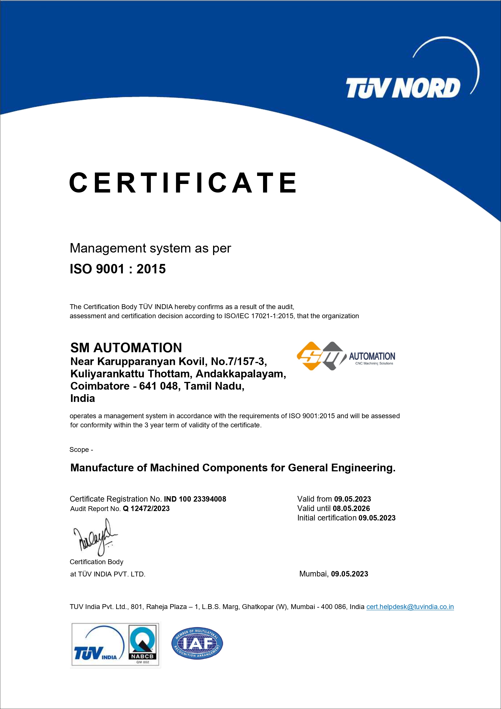 ISO 9001 : 2015 Certification